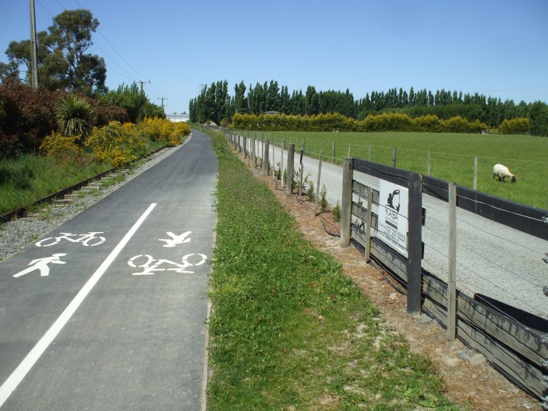 From Marshs Road the trail then goes along the separated bike path on the old railway corridor into Prebbleton.